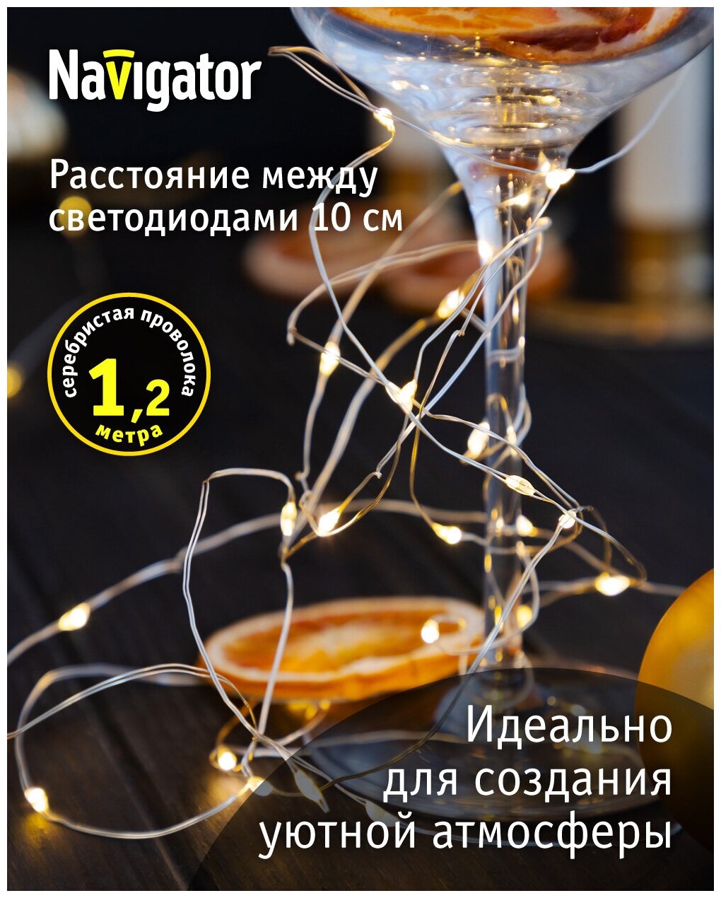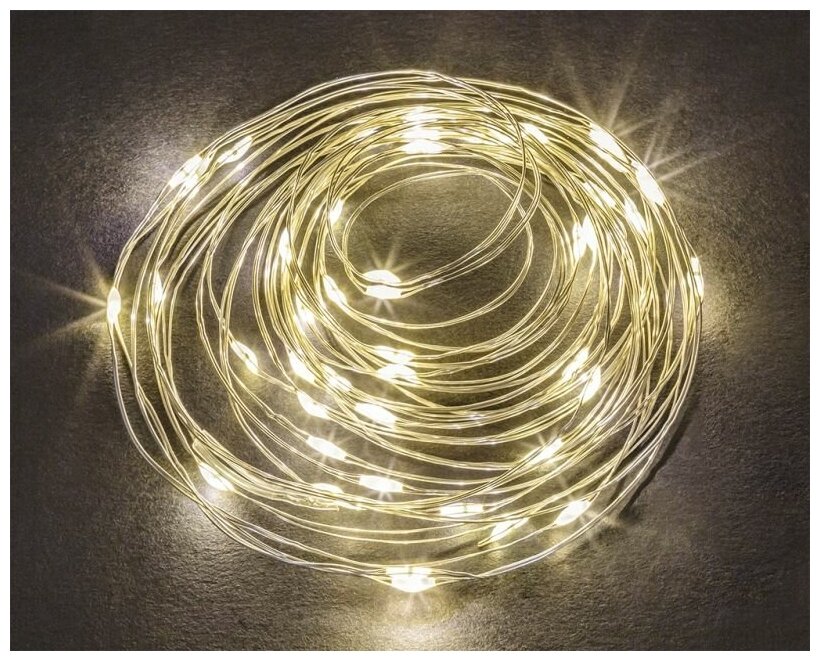 Гирлянда с микросветодиодами Navigator 80 710 "Роса" 1,2 м, теплый белый, на батарейках информация: