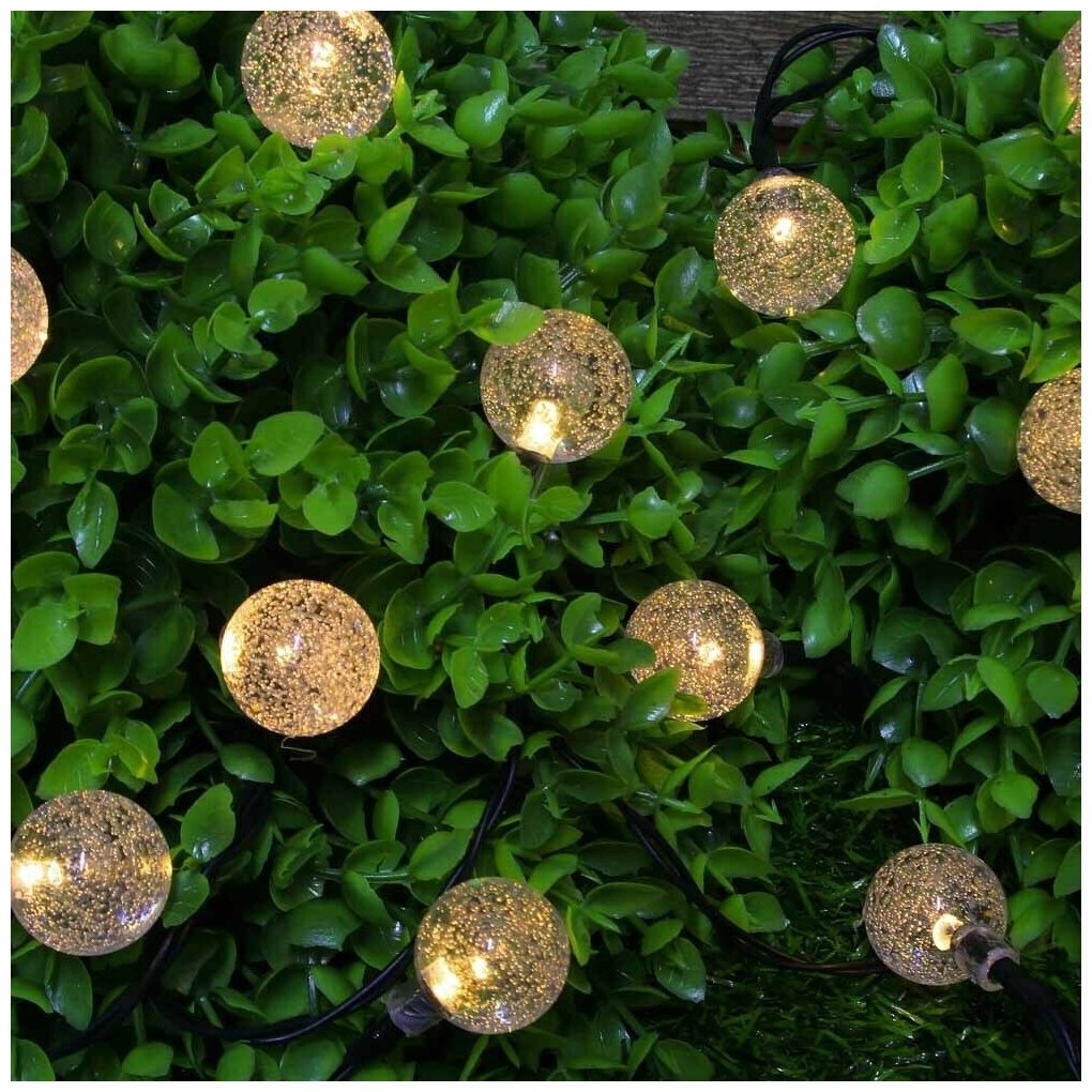 Отзывы на INBLOOM Гирлянда на солн. батарее, 10LED, 2м, шампань, 2 реж, шар, ПВХ зел, 2V60mA, 1.2V600mAh