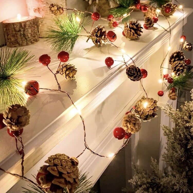 Светодиодная гирлянда 40 ламп 6 метров Шишки теплые
