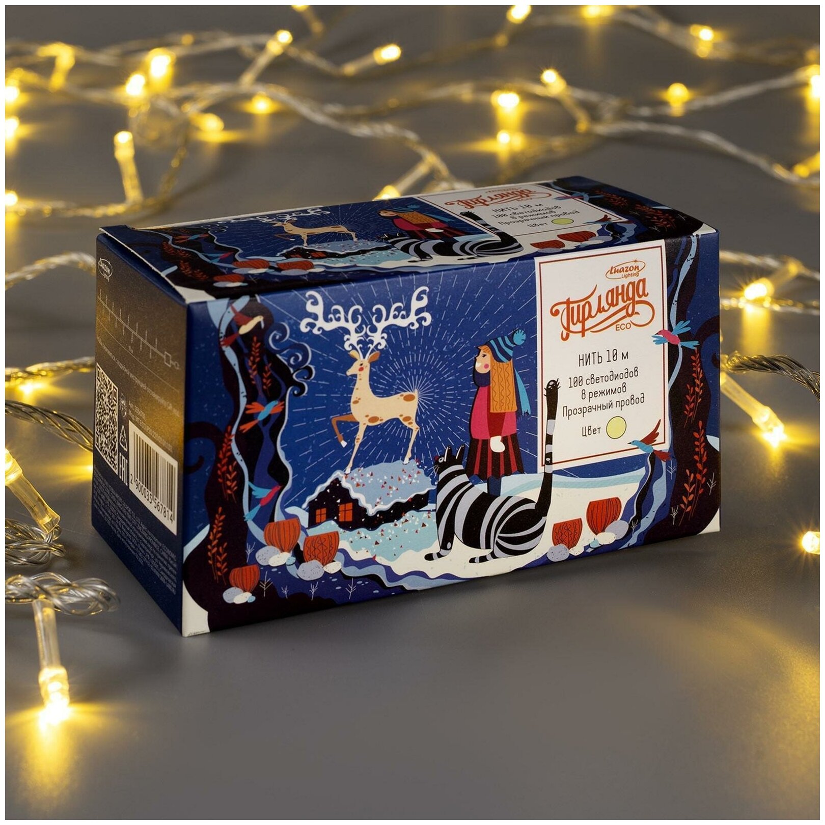 10 цен на Гирлянда "Нить" 10 м , IP20, прозрачная нить, 100 LED, свечение тёплое белое, 8 режимов, 220 В