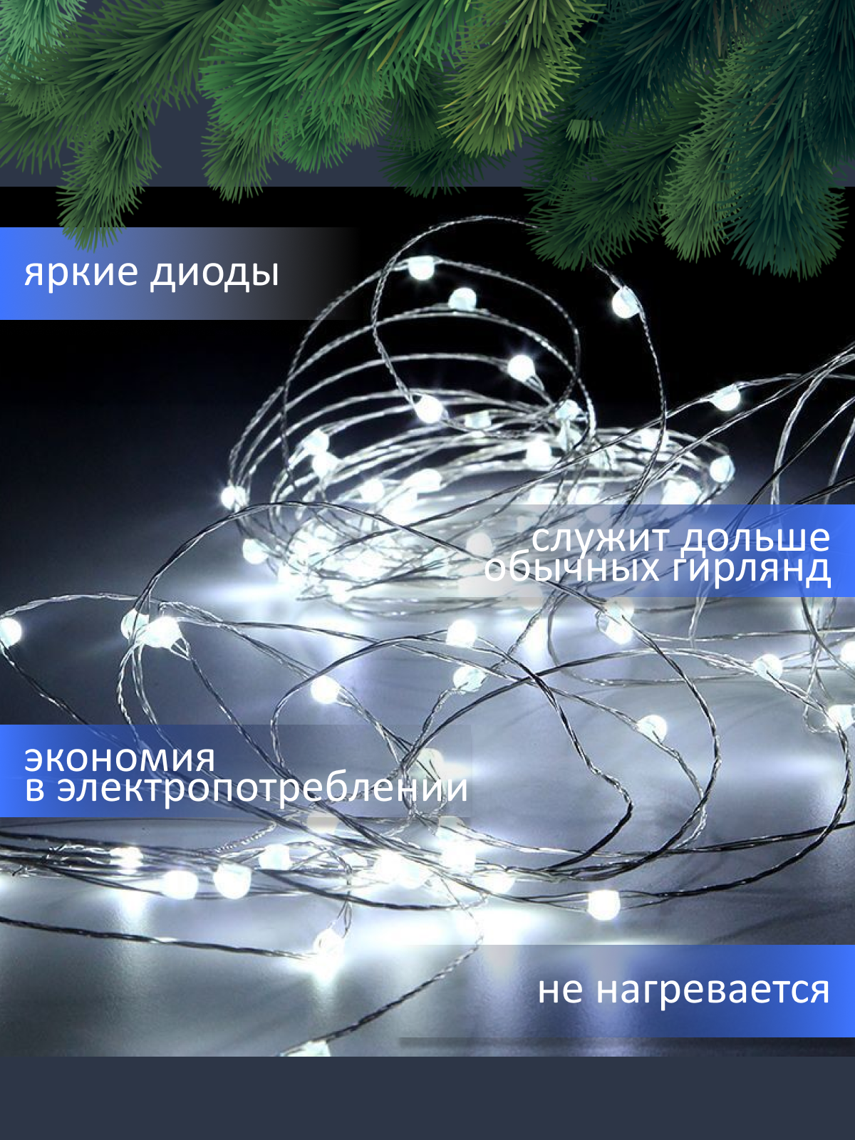 10 цен на Гирлянда нить светодиодная с пультом, белая