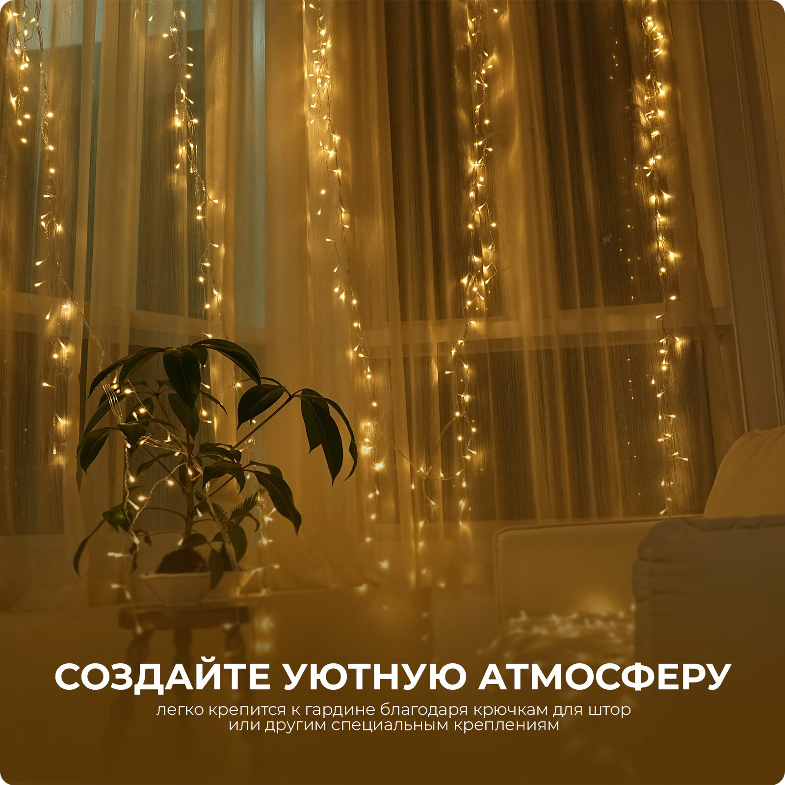 Гирлянда "Занавес" (теплый белый свет), 2х3 м информация: