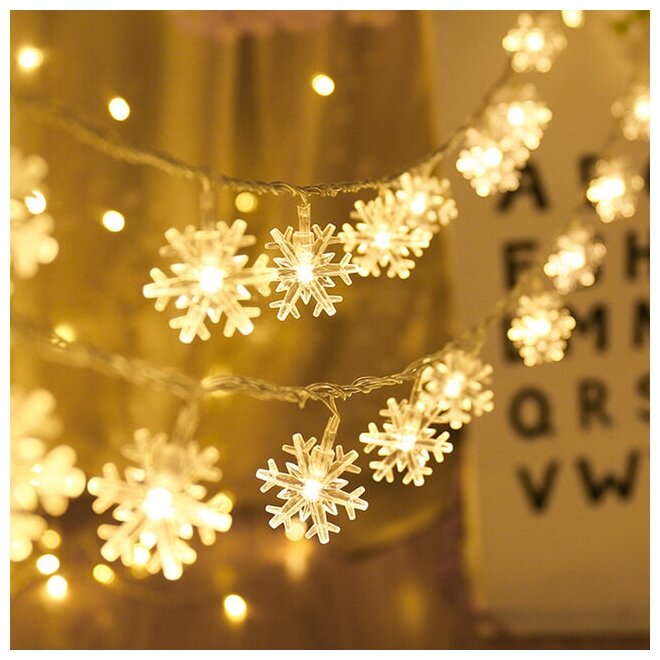 10 цен на Светодиодная гирлянда 40 ламп 6 метров Теплые Снежинки