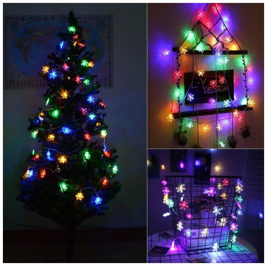 10 цен на Светодиодная гирлянда 40 ламп 6 метров Разноцветные Снежинки
