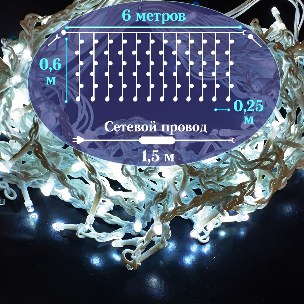 Уличная светодиодная бахрома "Холодный белый" 6х0,6 метра информация: