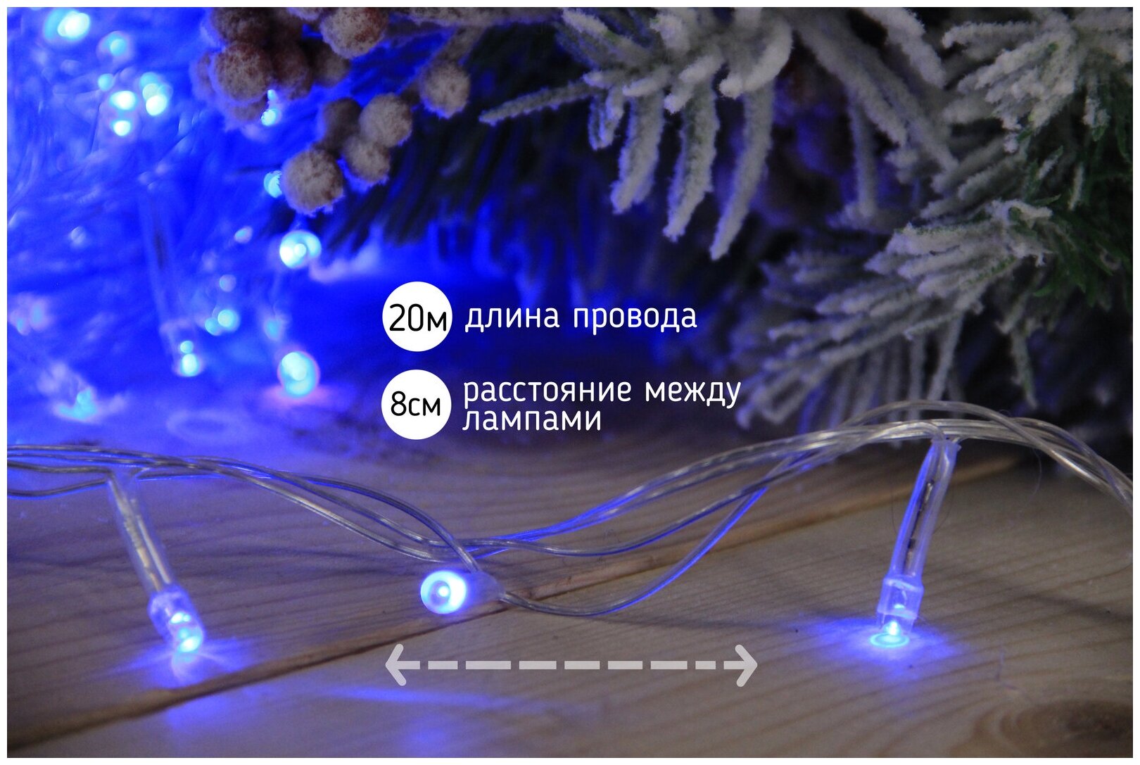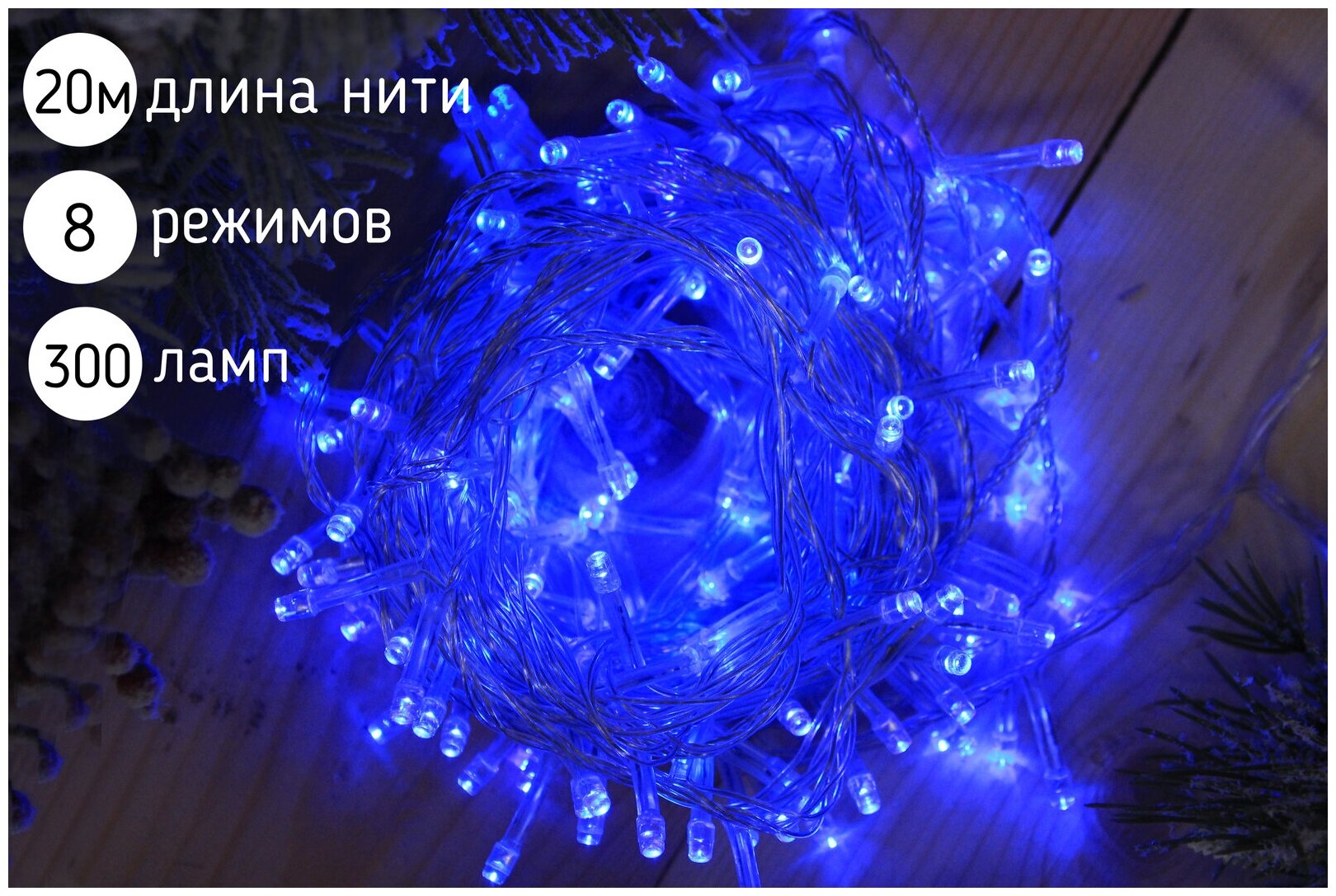 Светодиодная гирлянда "Нить" 300 ламп, 20 метров, синий цвет, IP44 информация: