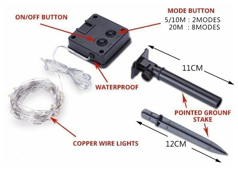Светодиодная гирлянда на солнечной батарее 100 LED MFSLC01, 10 метров информация: