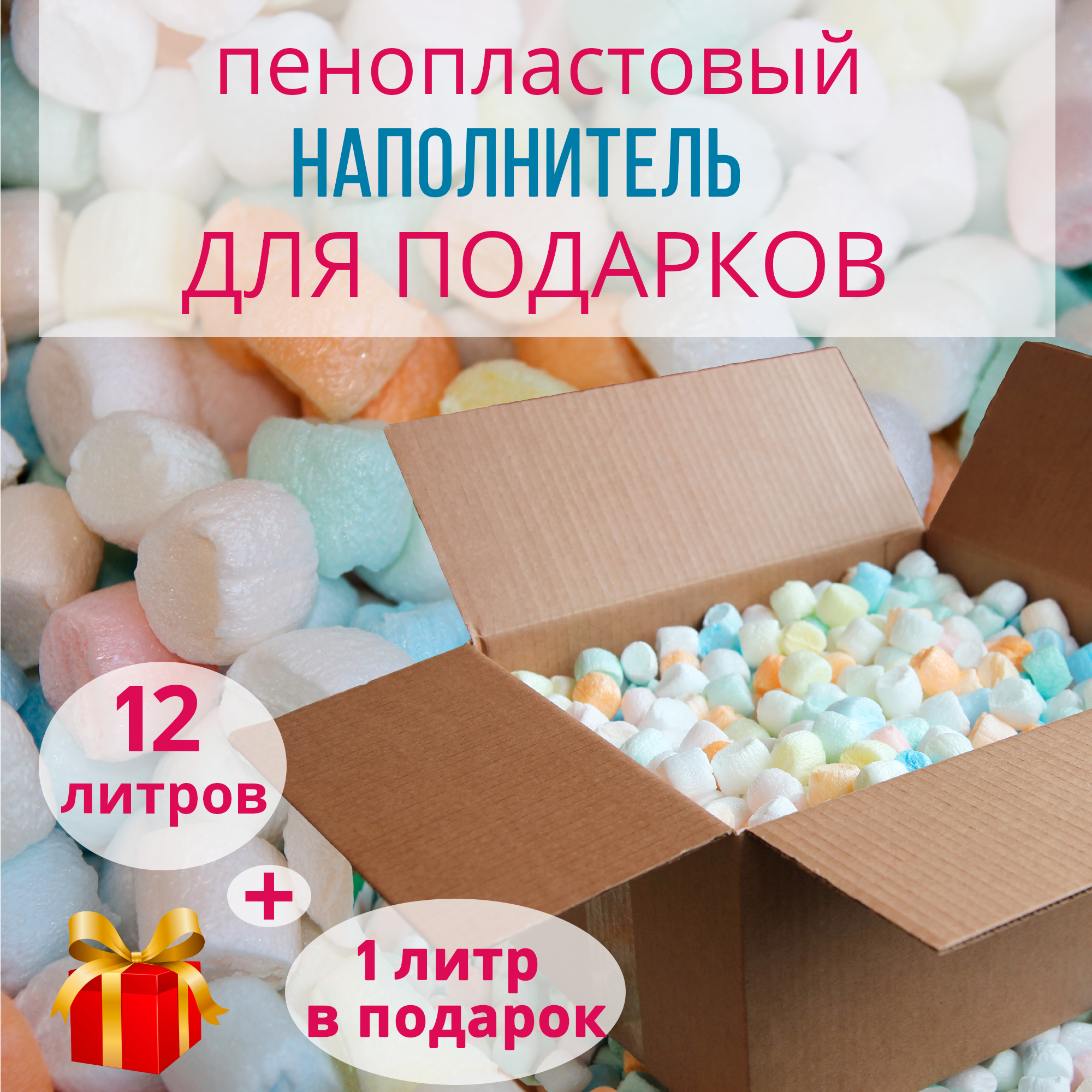 Отзывы на Наполнитель пенопластовый 12 л (пенополистирольный ) упаковочный праздничный разноцветный для подарков и коробок