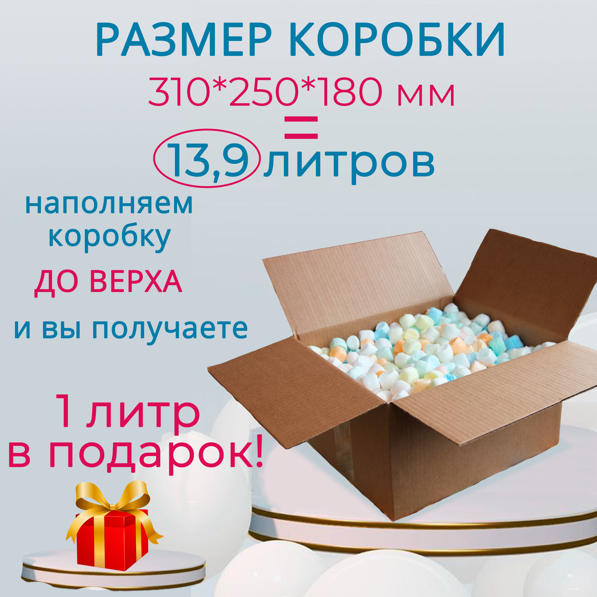 | Комплектация | Пенопластовые шарики в коробке объём 13 литров |