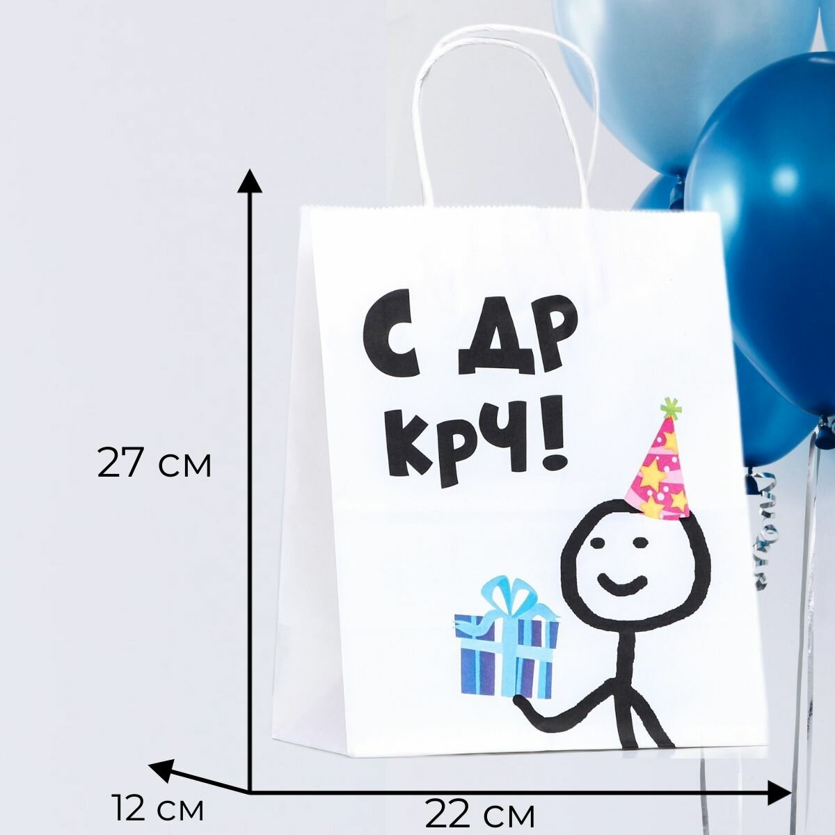 Пакет подарочный на день рождения, юбилей, с надписью "С ДР крч!" для упаковки подарков, универсальный крафтовый с приколом 22х27х12 см. информация: