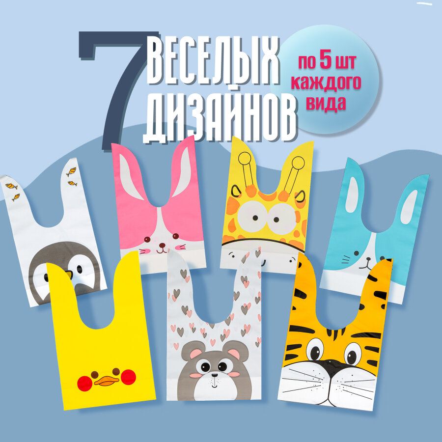 10 цен на Подарочные пакеты в детский сад и школу, набор 35 штук (7 видов по 5 штук), зажимы в комплекте