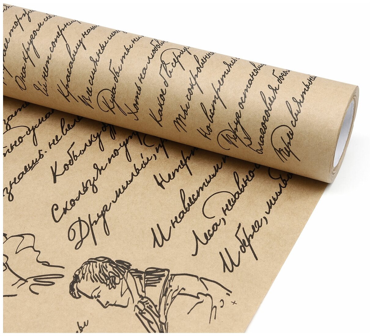 10 цен на 60111 Бумага крафт 70г/м2, 70см*10м, Пушкинские строки, черный