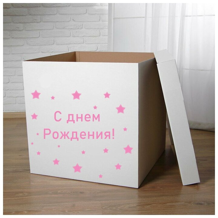 10 цен на Подарочная коробка с надписью "С днем Рождения" 60 см розовый