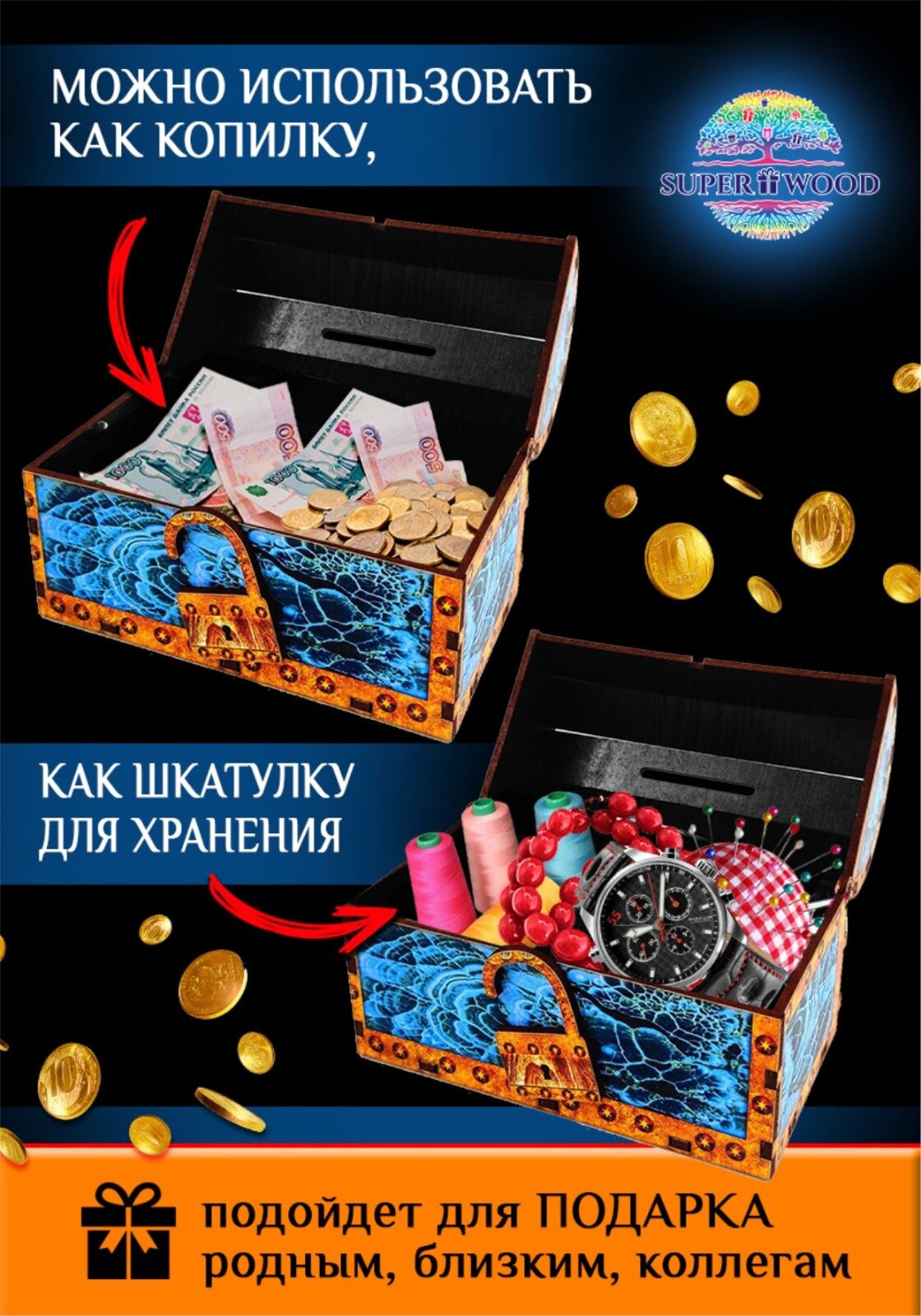 10 цен на Сундук-копилка "Лазурит"