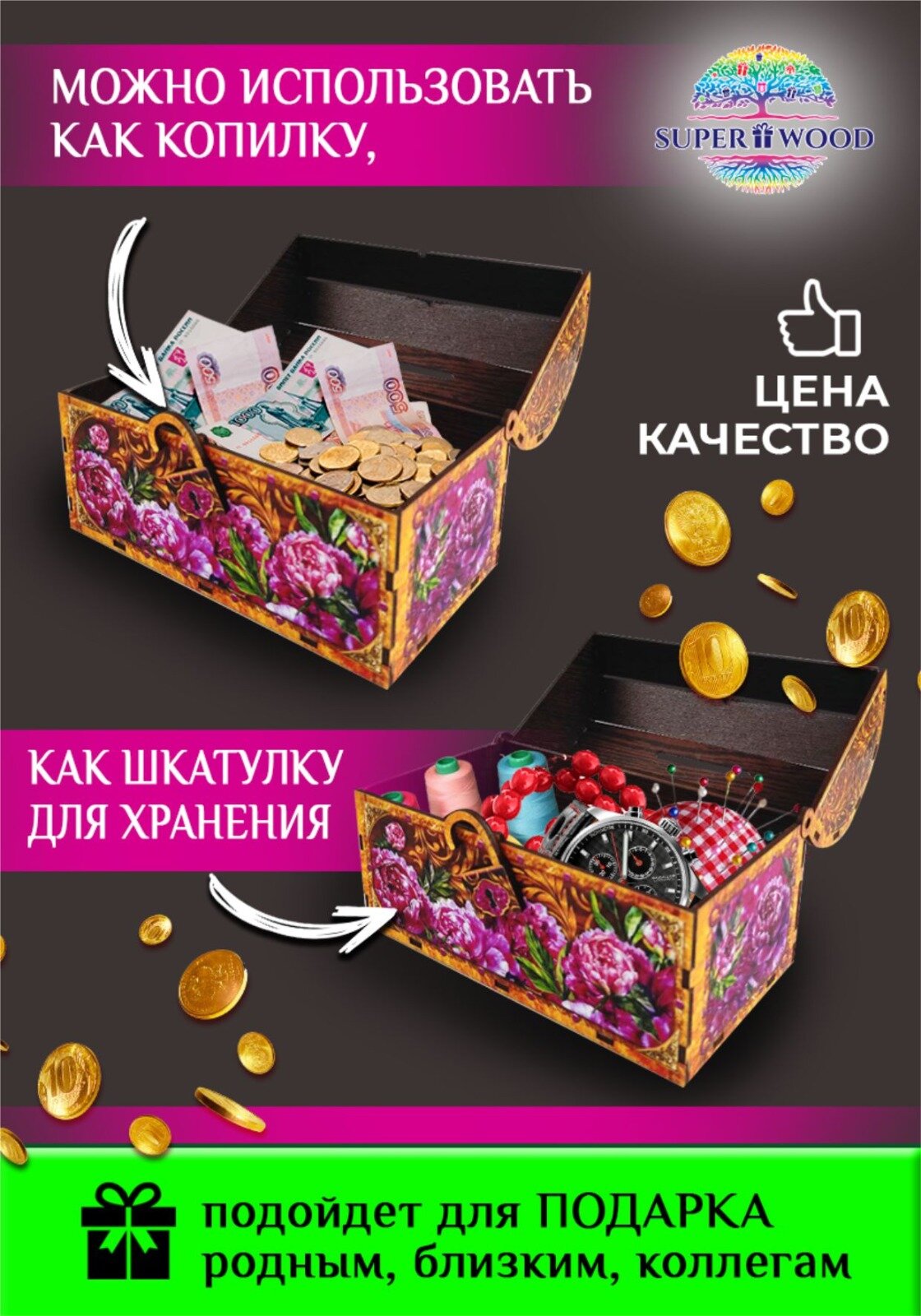 10 цен на Сундук-копилка "Пионы"