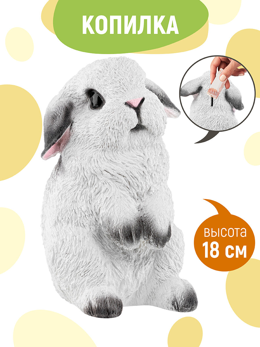 10 цен на Копилка "Кролик №4 Белый с чёрными кончиками" высота 17,5 см,ширина 11,5 см, длина 11,5 см.