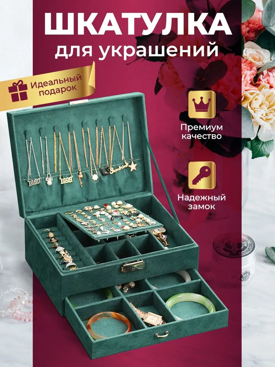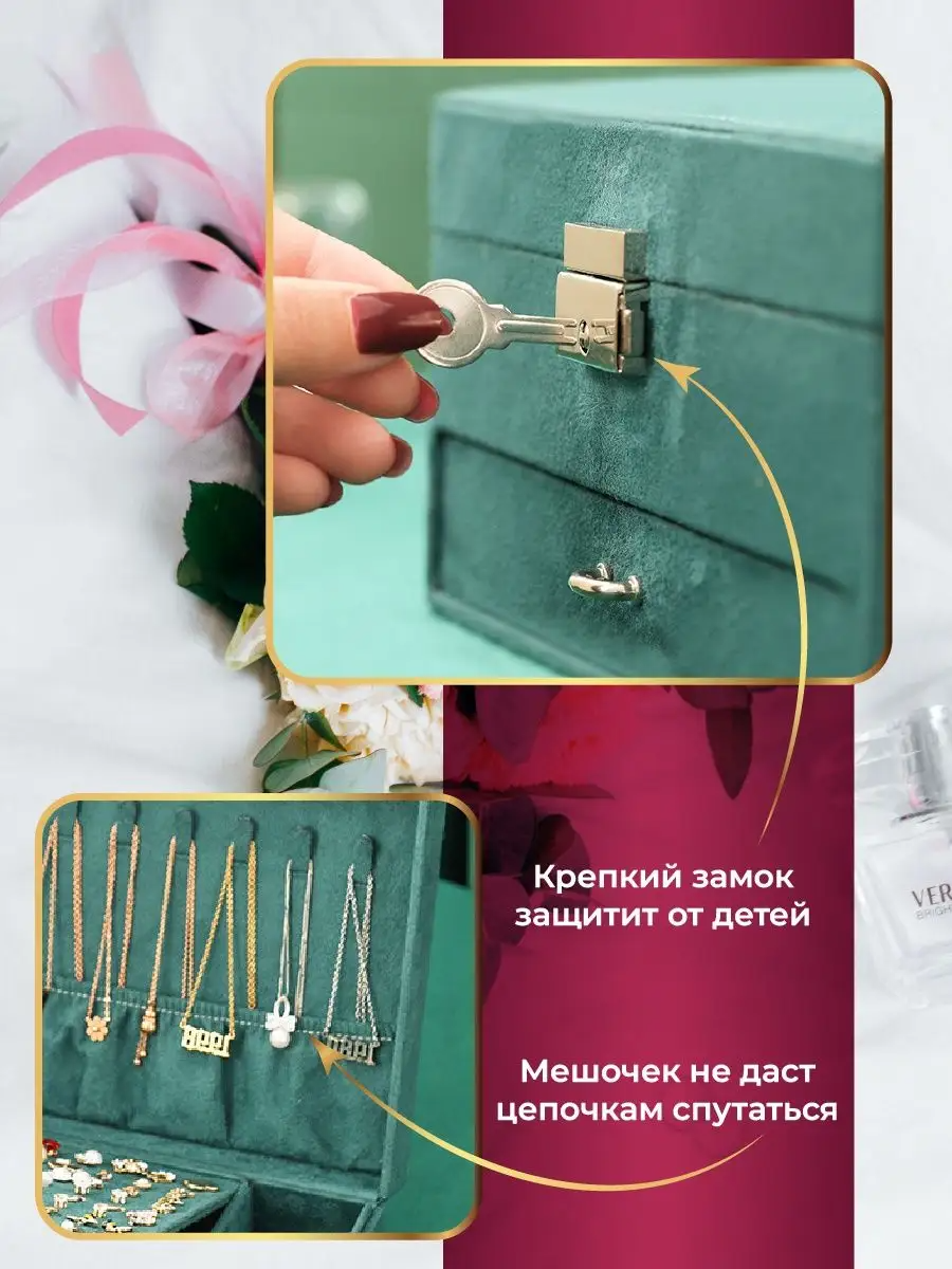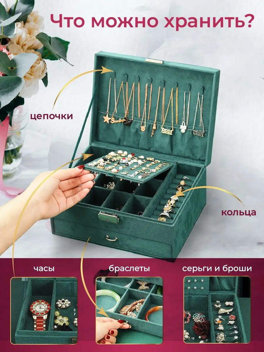 Отзывы на Шкатулка для украшений WELHOME большая шкатулка с замком, изумрудная