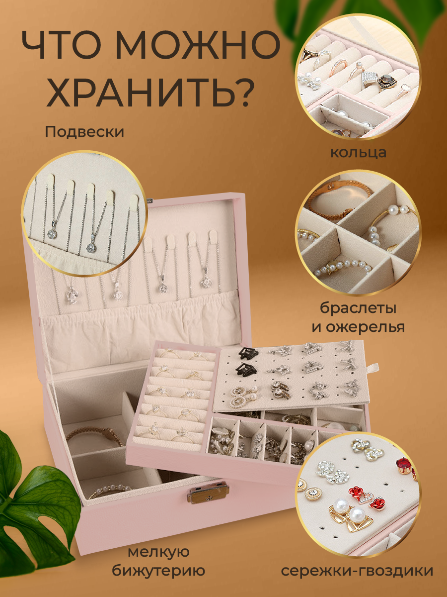 Отзывы на Шкатулка для украшений WELHOME большая шкатулка с замком, пудровая