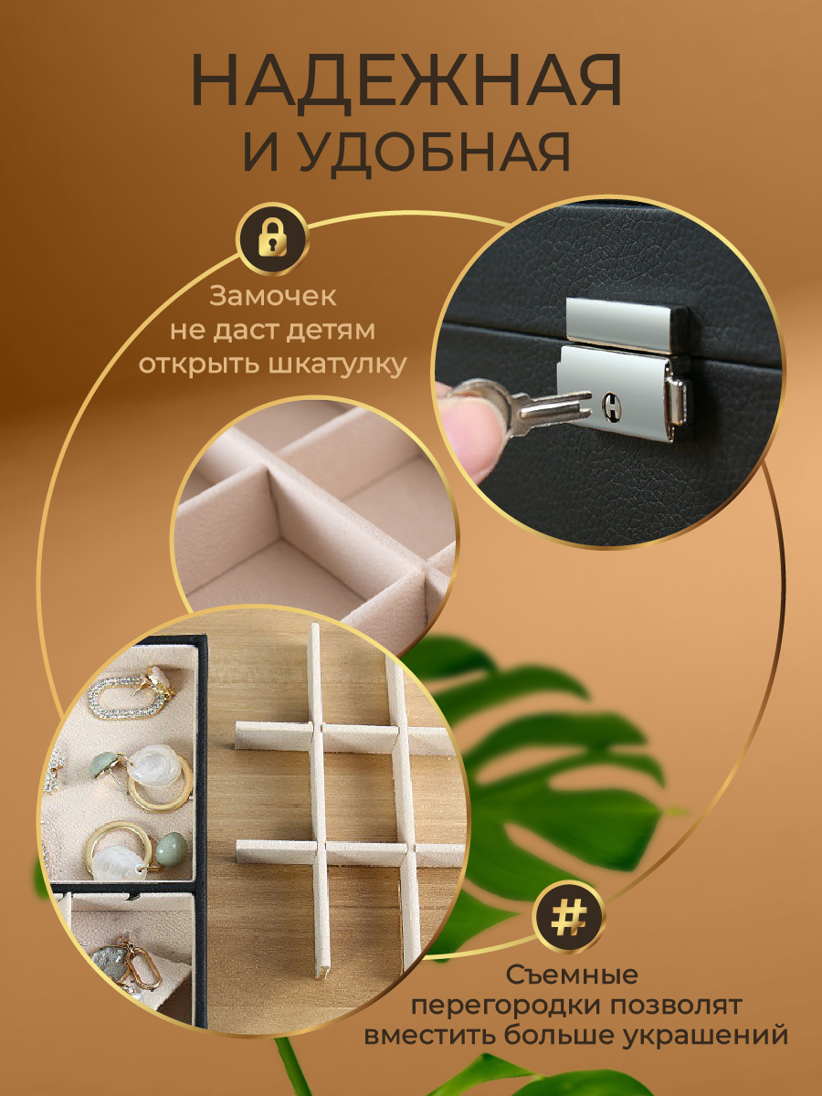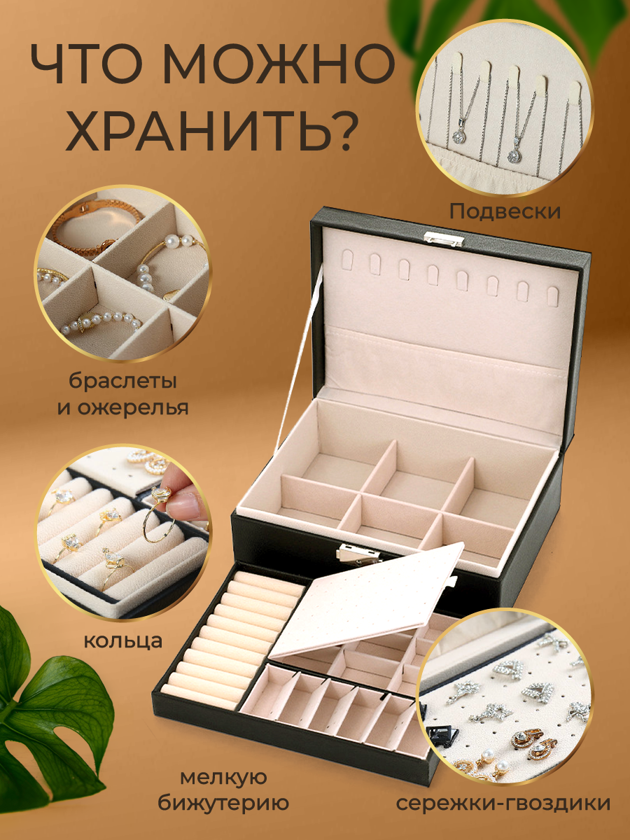 Отзывы на Шкатулка для украшений WELHOME большая шкатулка с замком, черная