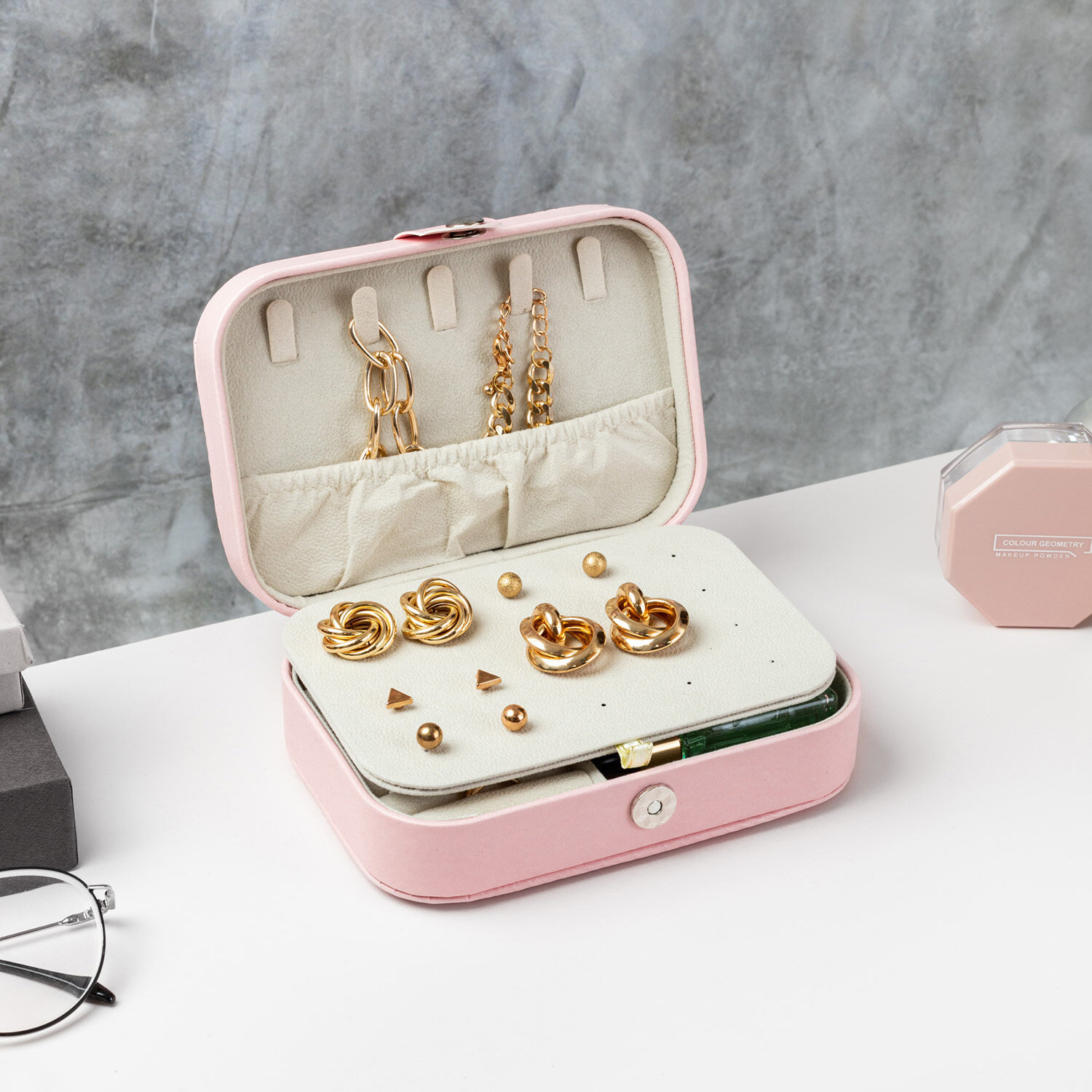 10 цен на Шкатулка CLOX для украшений, маленькая, из искусственной кожи, розового цвета
