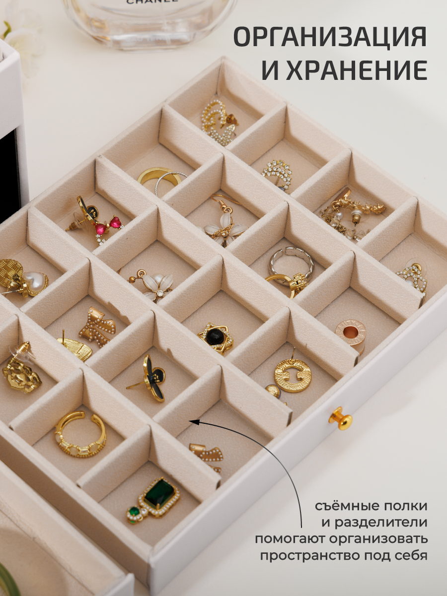 Отзывы на Шкатулка для украшений WELHOME 3-х ярусная большая шкатулка с замком, белая