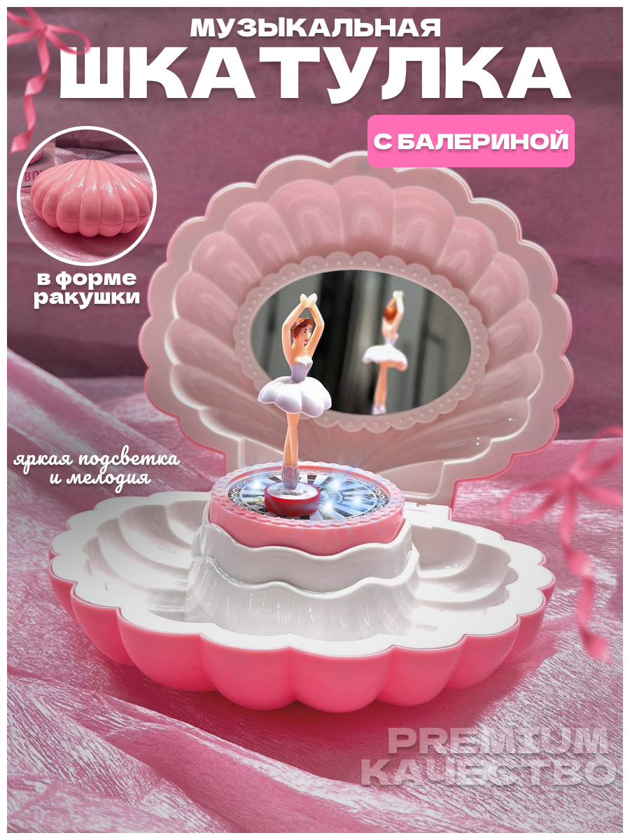 Отзывы на Музыкальная шкатулка с танцующей балериной, механическая с подсветкой , ракушка розовая 16 см