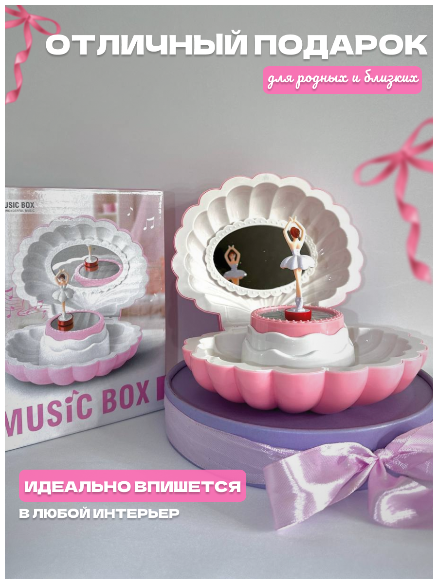 10 цен на Музыкальная шкатулка с танцующей балериной, механическая с подсветкой , ракушка розовая 16 см