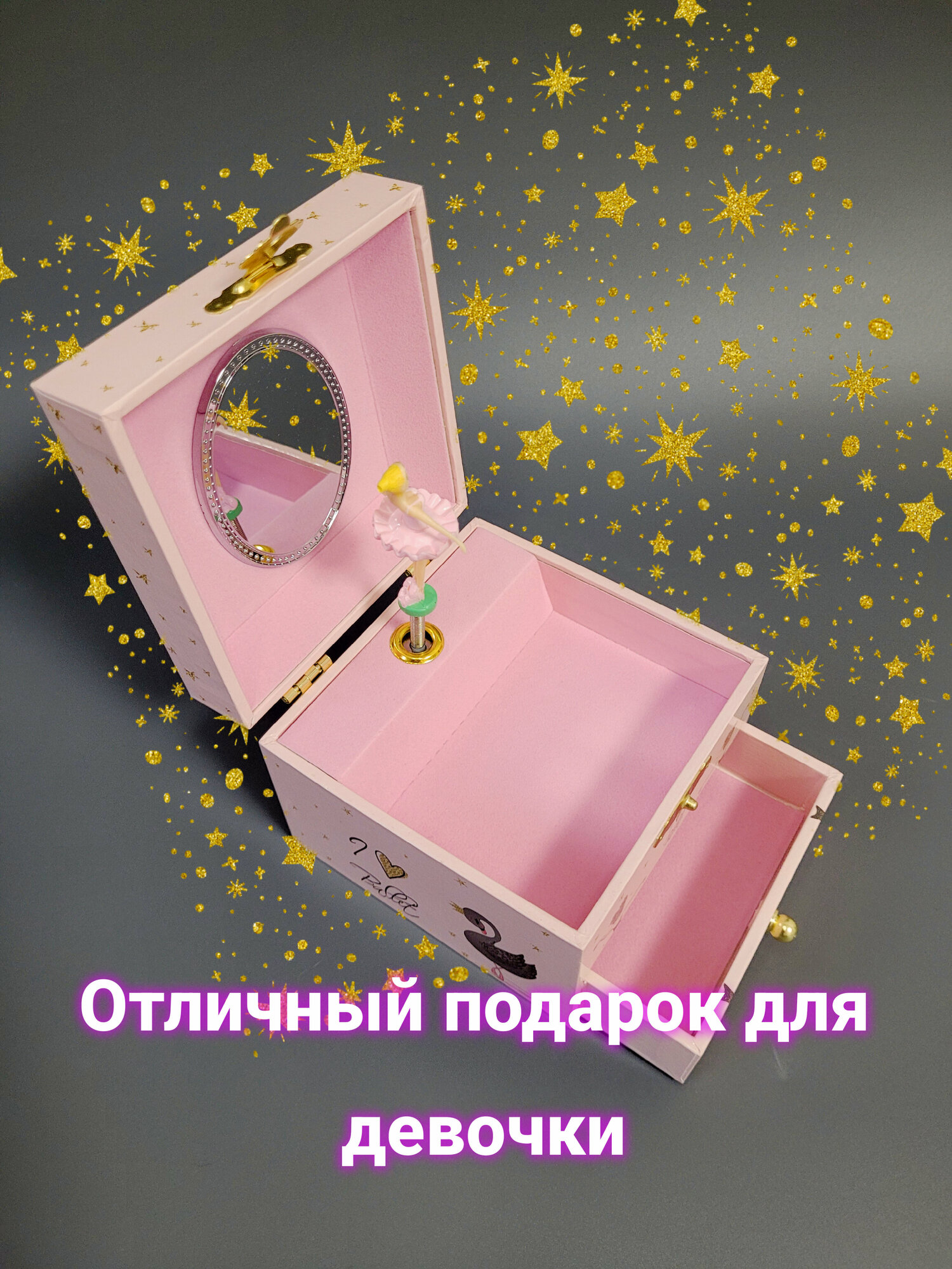 0 отзывов, средняя оценка 0. Чтобы купить «Музыкальная шкатулка для украшений с балериной» по лучшей цене мы сканируем авито, алиэкспресс, маркет, озон, савеловский, плеер, горбушку, беру, официальные сайты и находим минимальную. Администрация не несет ответсвенность актуальность цен на Музыкальная шкатулка для украшений с балериной, более подробно узнавайте на сайте магазина.