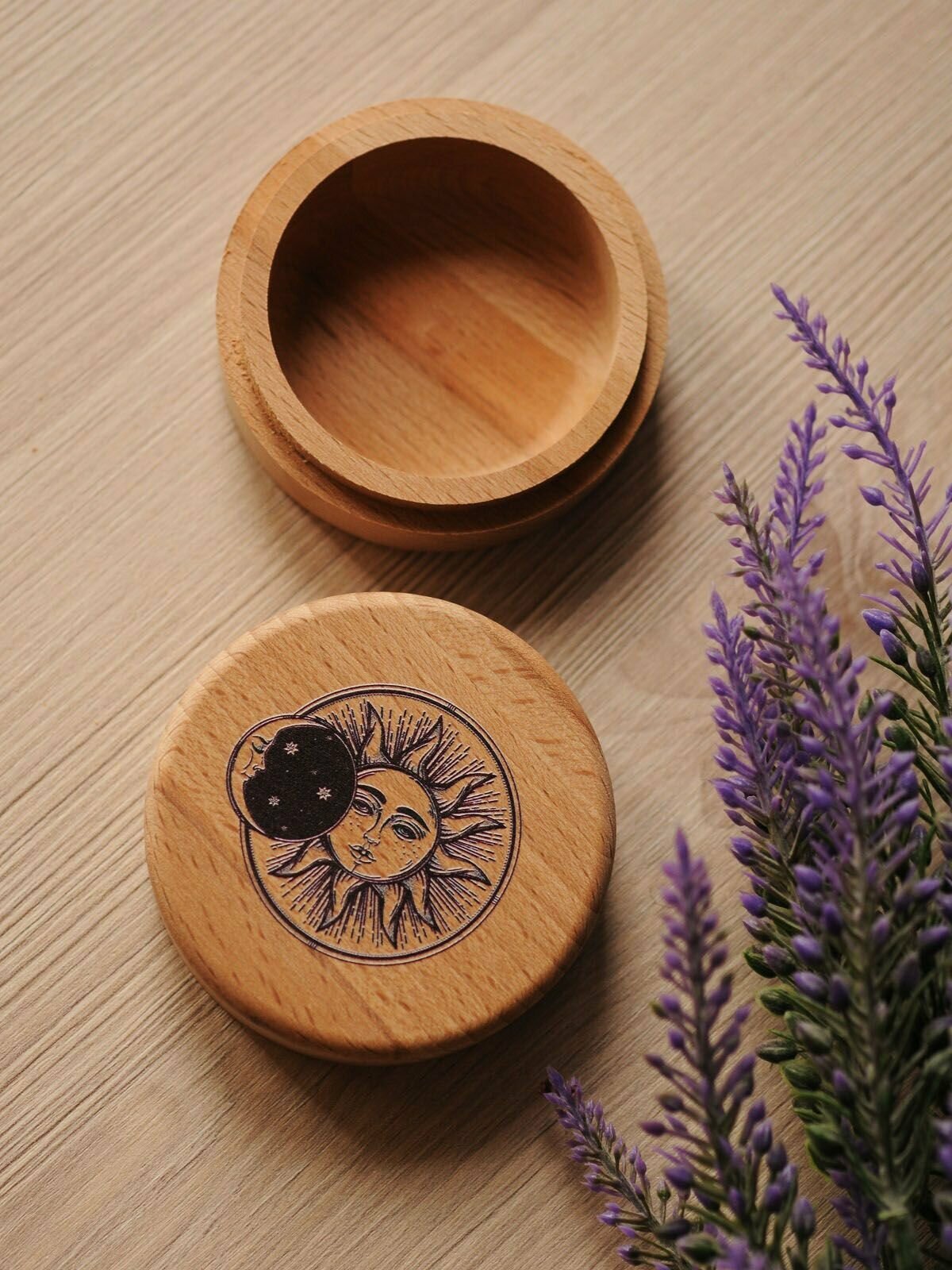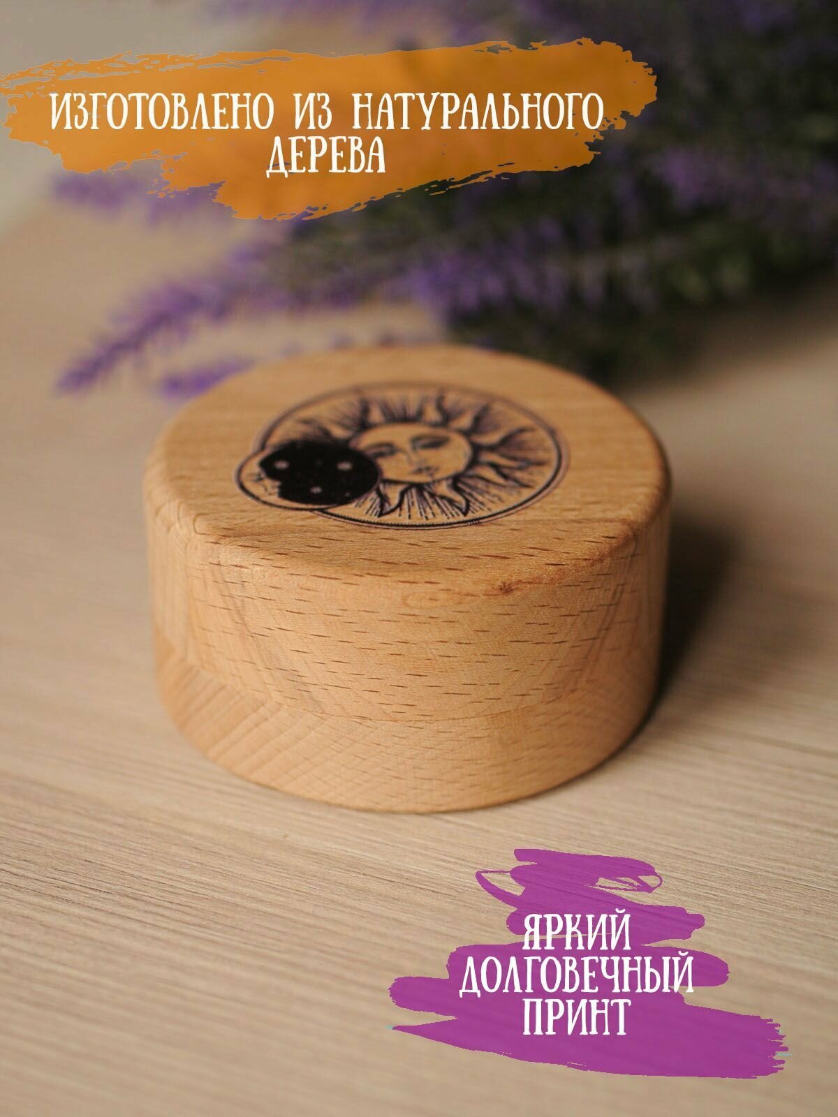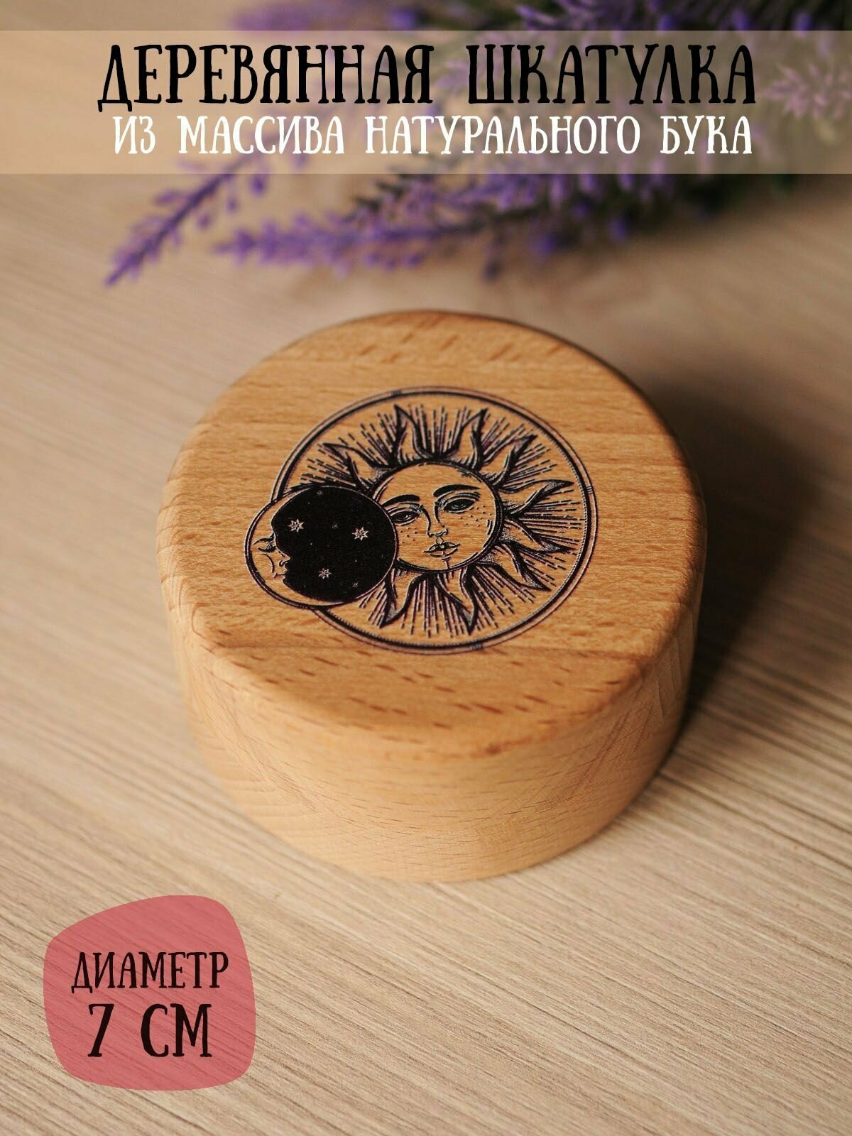 Шкатулка деревянная для подарков и бижутерии "Солнце и луна" RiForm, диаметр 7см информация: