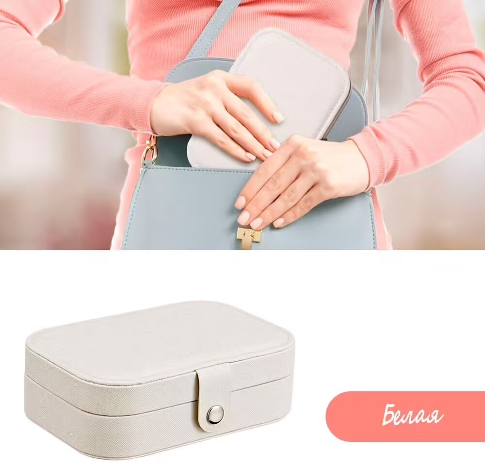 | Дополнительная информация | Компактный размер, Водоотталкивающая пропитка, Отделения для колец, Дорожная шкатулка |