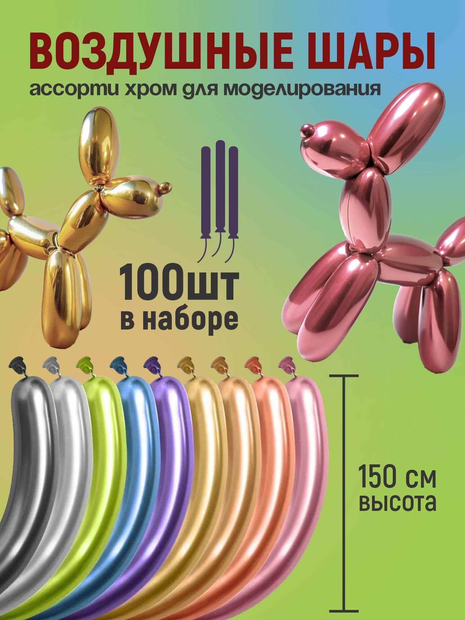 10 цен на Набор воздушных шаров для моделирования. Хром ассорти 100 шт, 150 см.