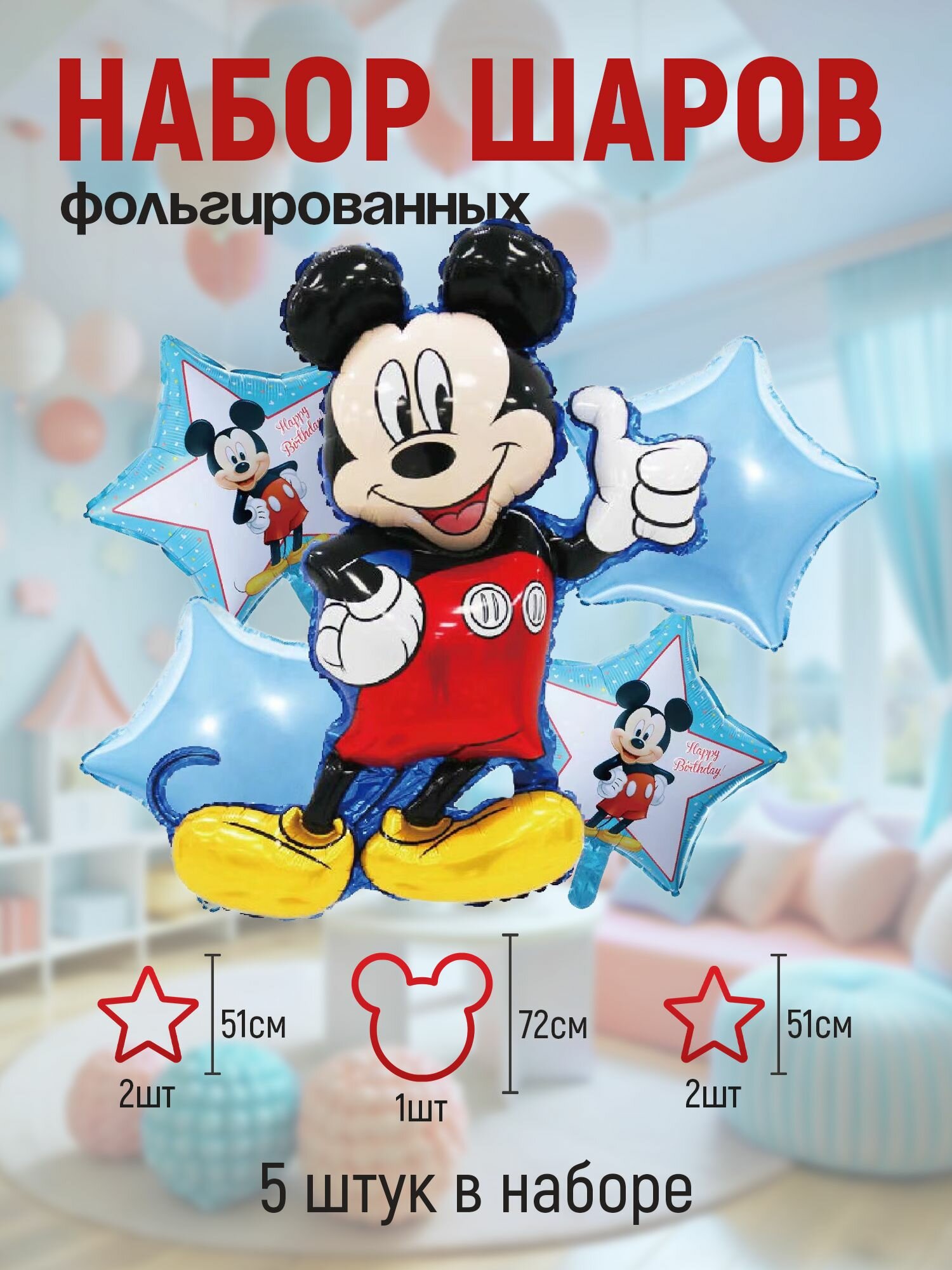 10 цен на Набор воздушных шаров фольгированных 5 штук "Микки маус звезды"