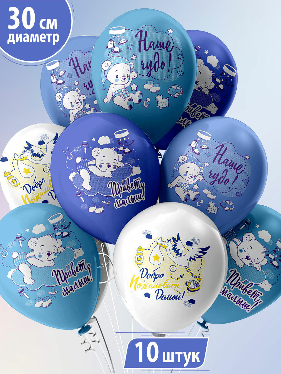 10 цен на Шарики воздушные Новорожденные на выписку из роддома для мальчика "Ты Наше чудо!" 10 шт