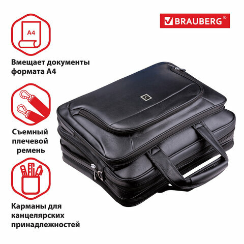 Сумка деловая BRAUBERG Favorite, 32х41х12 см, отделение для планшета и ноутбука 15,6, кожзам, черная, 240399 2 491 ₽