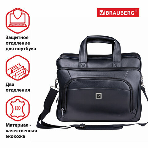 Сумка деловая BRAUBERG с отделением для ноутбука 15.6", комплект 2 шт., "Favorite", 2 отделения, экокожа, 41х32х12 см, 240399 информация: