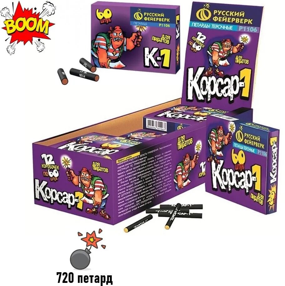 Петарды "К-1" (Корсар 1, 12 коробочек по 60 шт.) информация:
