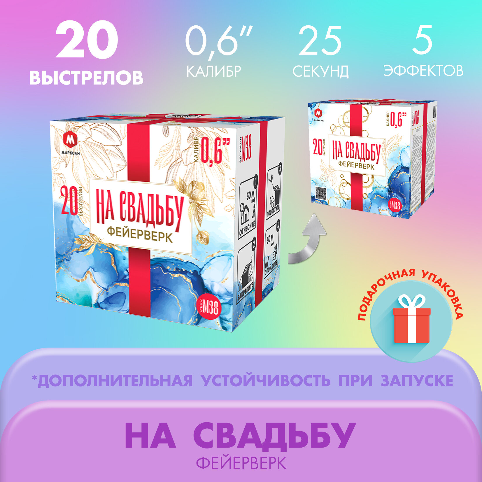 Фейерверк салют на свадьбу 20 залпов калибром 0.6"(17мм) / М38 Марксан / Пиротехника на праздник день рожденье информация: