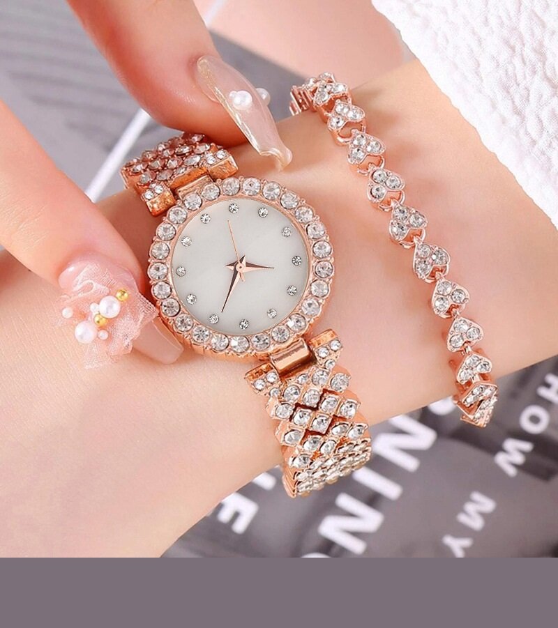 Часы женские с браслетом, цепочкой, серьгами и кольцом / часы женские кварцевые 497 ₽