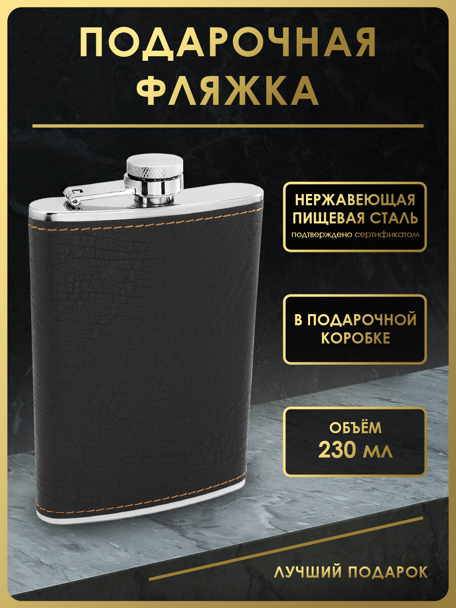 10 цен на Фляга FL9-101, 230 мл, нержавеющая сталь, кожа, цвет черный