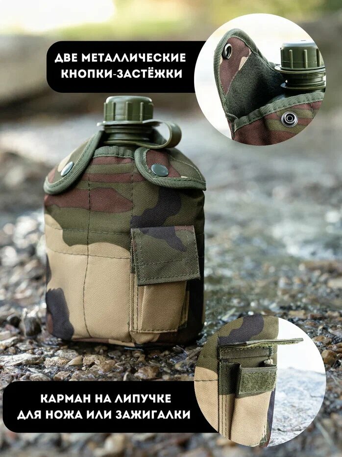 Отзывы на Фляжка армейская для воды с котелком, 1 литр, джунгли камуфляж . Походная фляга для еды для охоты, рыбалки, похода и тактических маршрутов