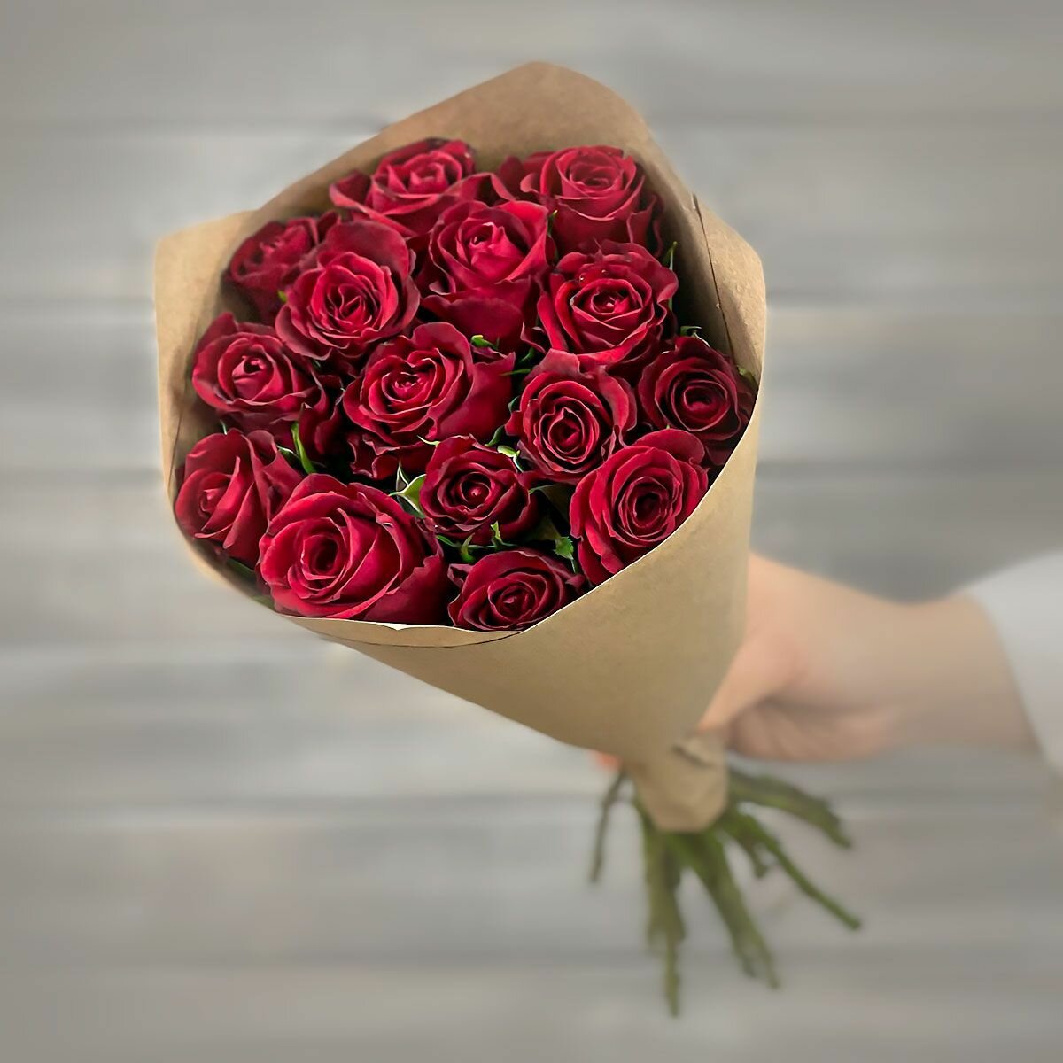 Букет живых цветов из 15 красных роз 40см в крафте 1 576 ₽