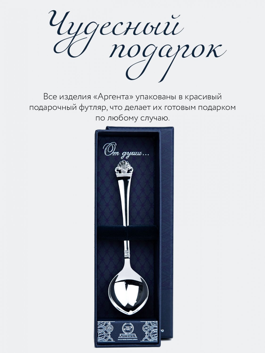 Серебряная чайная ложка с логотипом "Е" с позолотой от бренда "Аргента"