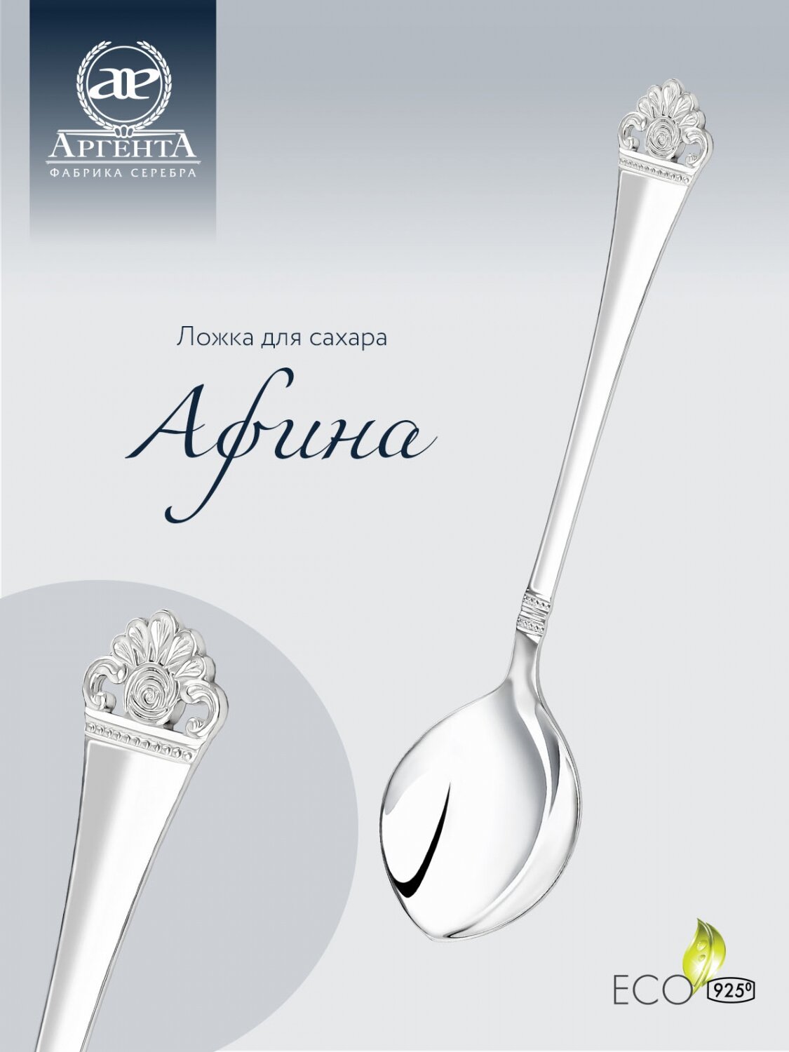 Ложка для сахара из серебра 925 пробы "Афина", бренд "Аргента" информация: