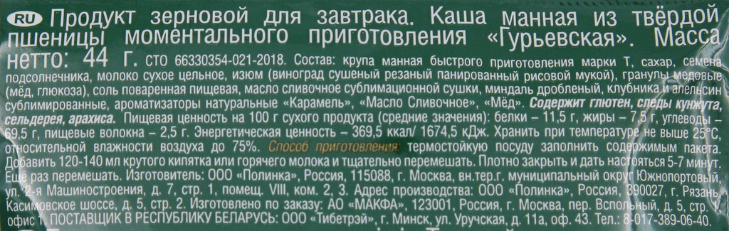 Каша манная MAKFA Гурьевская, 44г информация: