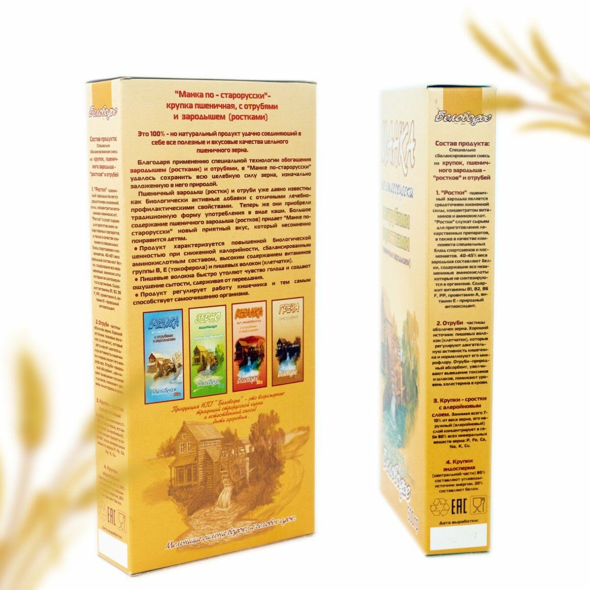 Каша Манка "По-старорусски с отрубями и ростками", Беловодье, безмолочная, 500 г информация: