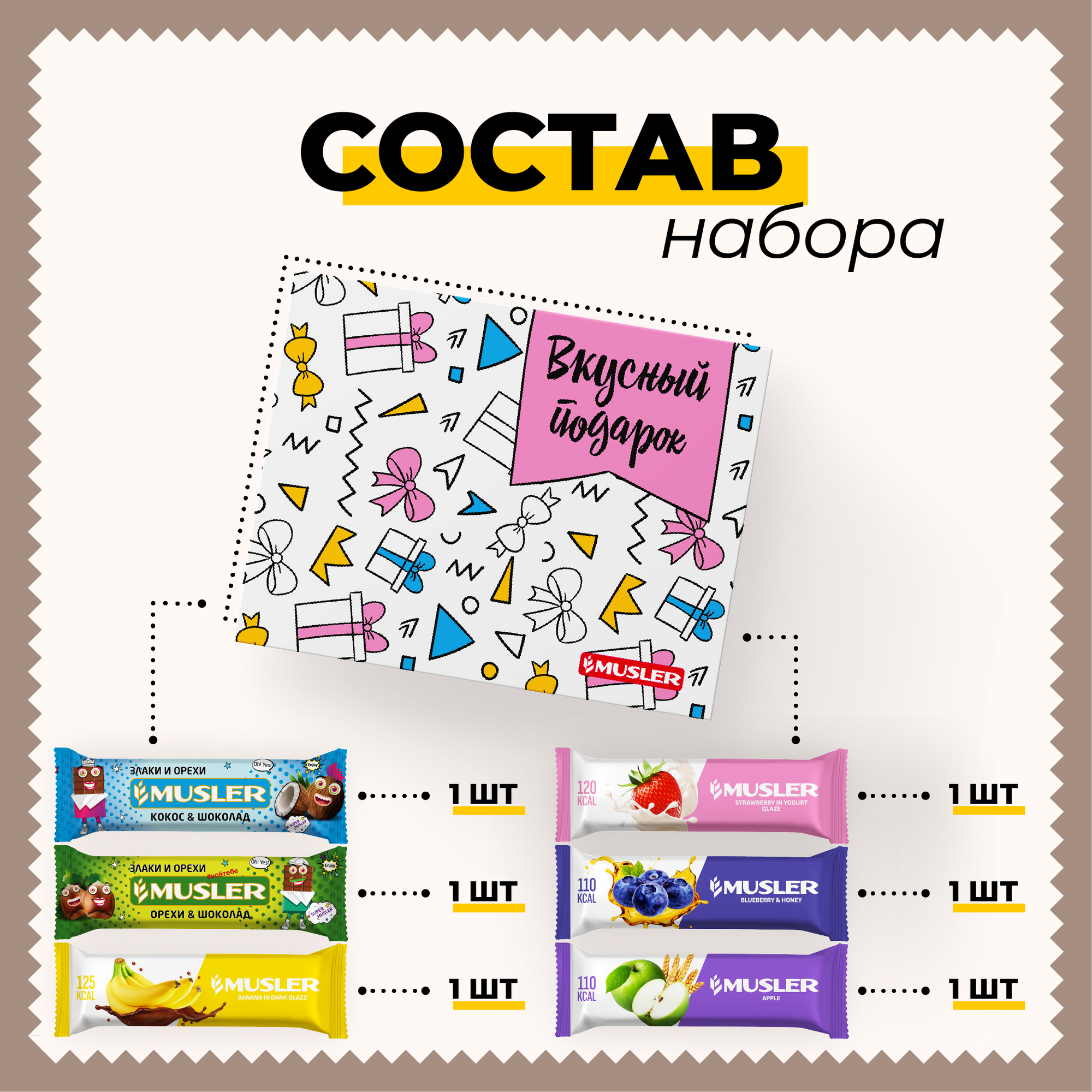 Подарочный набор №2 Вкусный подарок Musler (6шт) батончики мюсли информация: