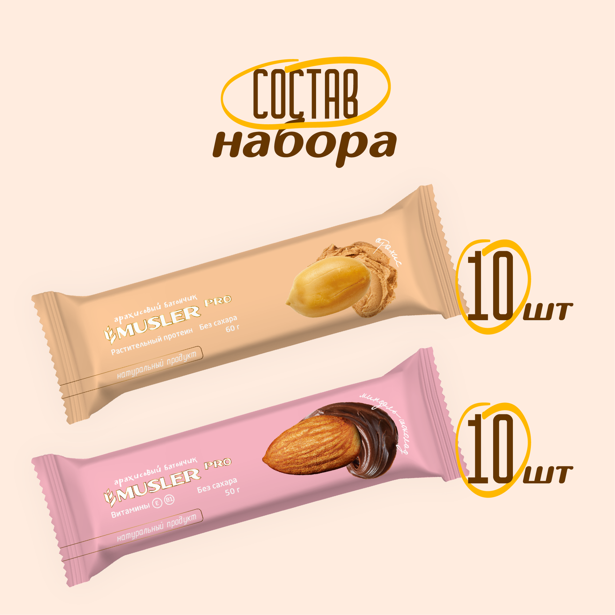 Арахисовые батончики Musler без сахара с миндалем и арахисом микс 20 штук информация: