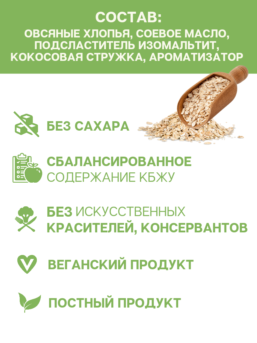 Состав | овсяные хлопья, подсластитель изомальтит, соевое масло, малина сублимированная, ароматизатор «Лесные ягоды». Содержит подсластитель. При чрезмерном потреблении может оказывать слабительное действие. |