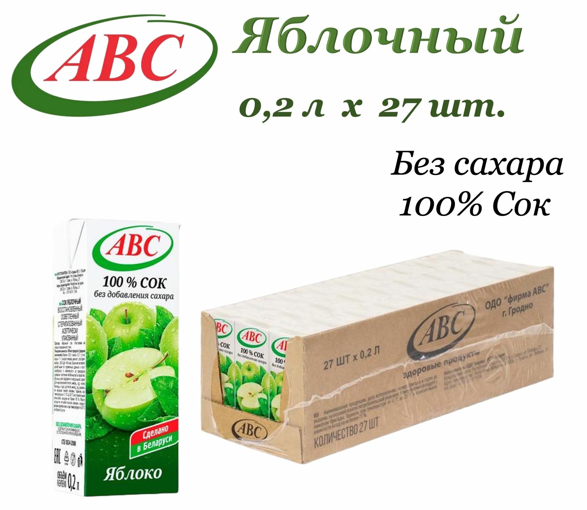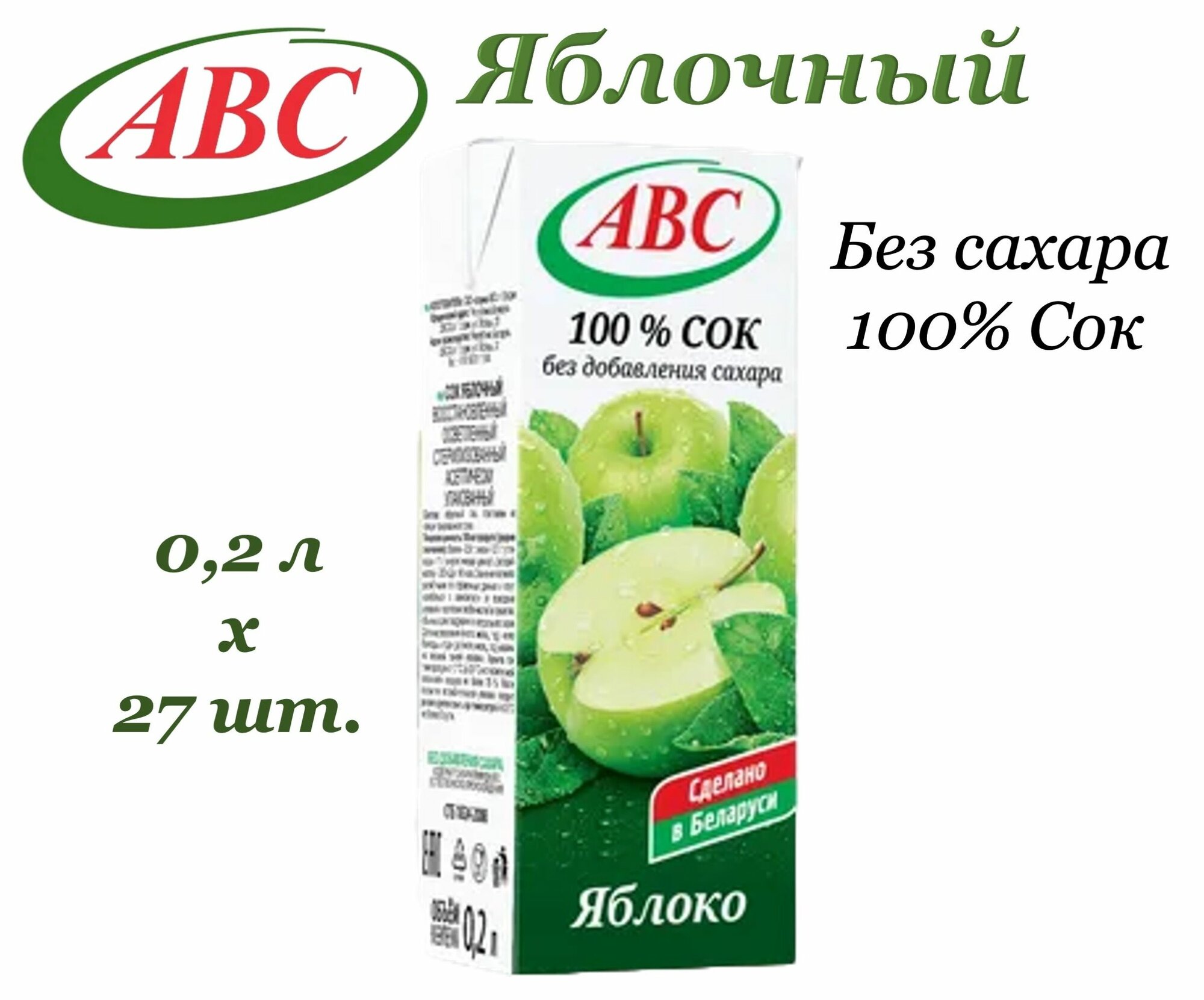 Сок "АВС" Яблочный без сахара 0,2 л х 27 шт. информация: