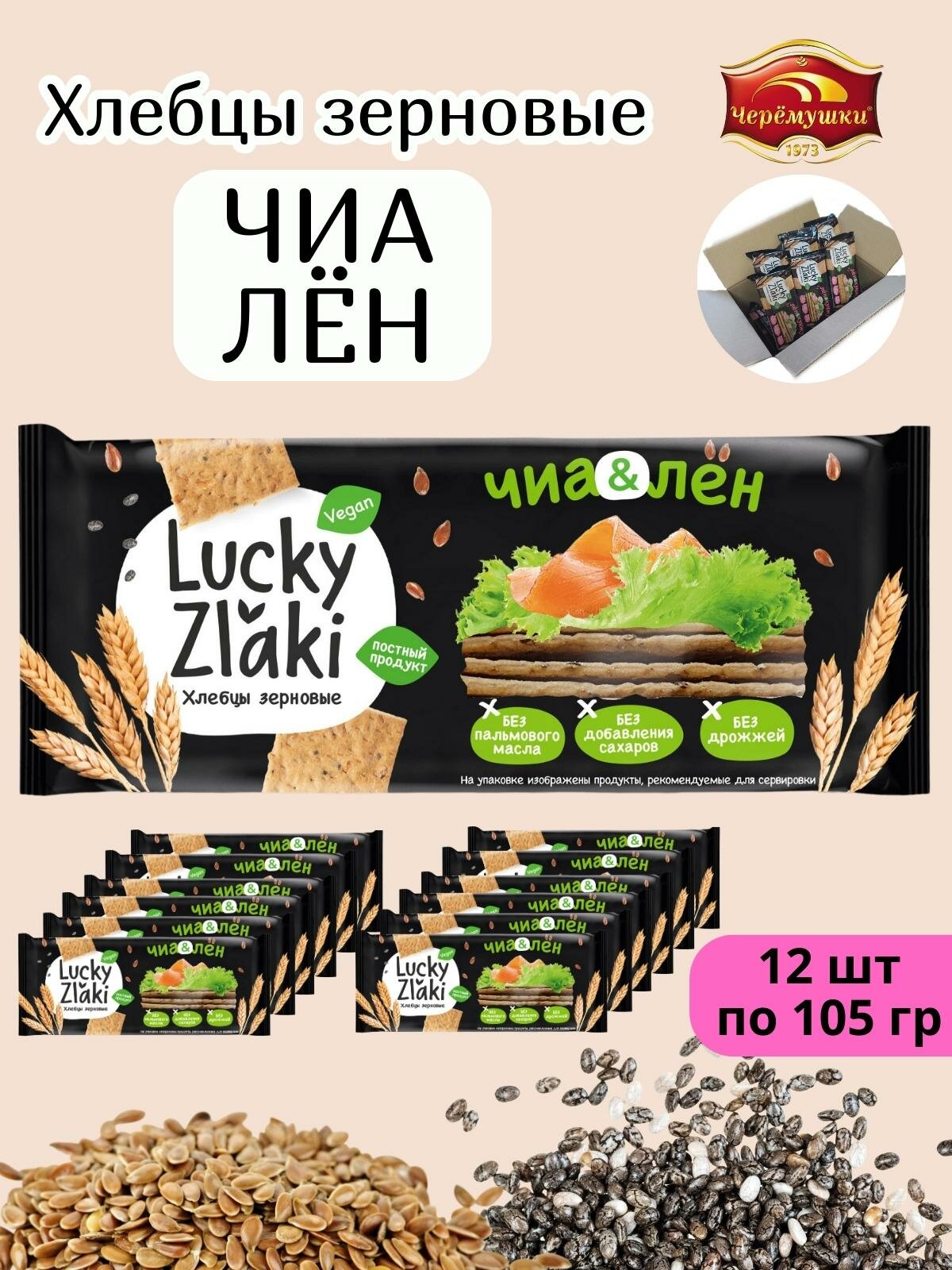 Хлебцы Лен - Чиа Lucky Zlaki , 12 шт по 105 гр информация:
